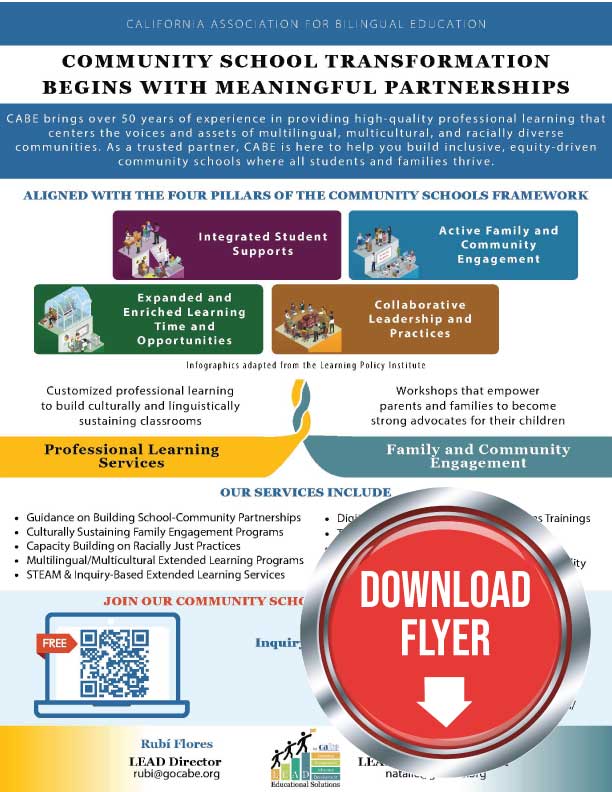 CABE brings over 50 years of experience in providing high-quality professional learning that centers the voices and assets of multilingual, multicultural, and racially diverse communities. As a trusted partner, CABE is here to help you build inclusive, equity-driven community schools where all students and families thrive.
