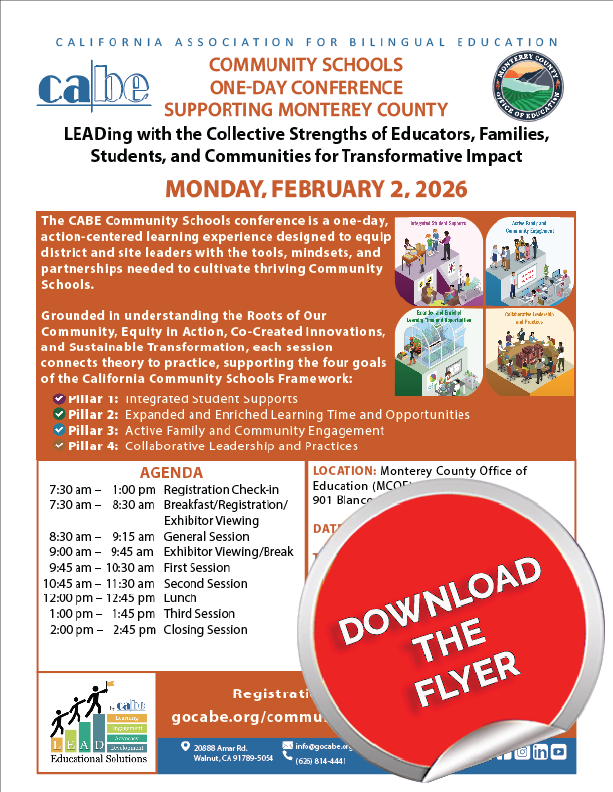 The CABE Community Schools conference is a one-day, action-centered learning experience designed to equip district and site leaders with the tools, mindsets, and partnerships needed to cultivate thriving Community Schools.